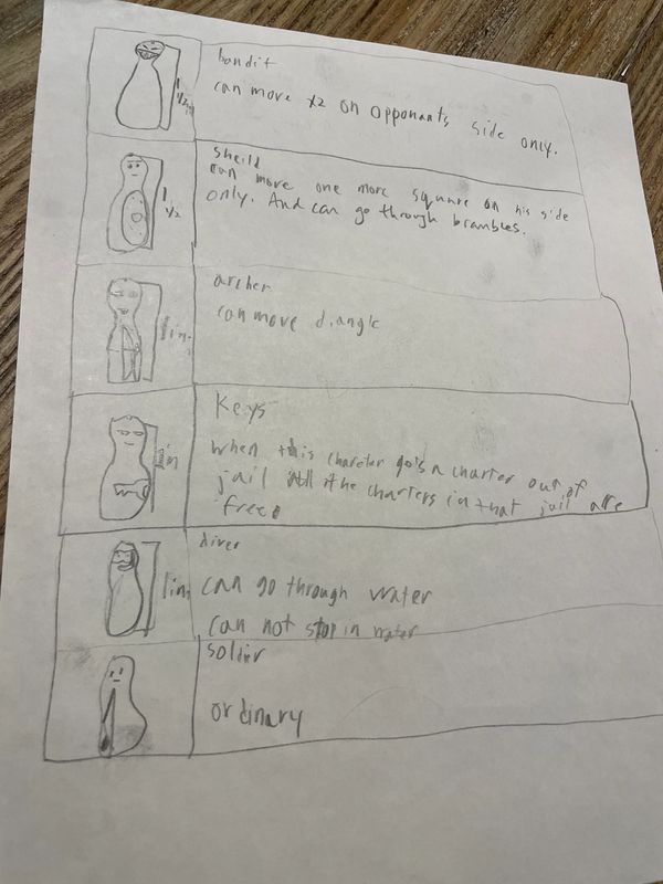 You can see how certain rules have been adjusted over time. For example, Ninja was originally called Keys and was the only piece who got everyone out of jail, originally the Shield could go through brambles (but it was too strong of a defender this way), and the Diver couldn’t stop in the water.